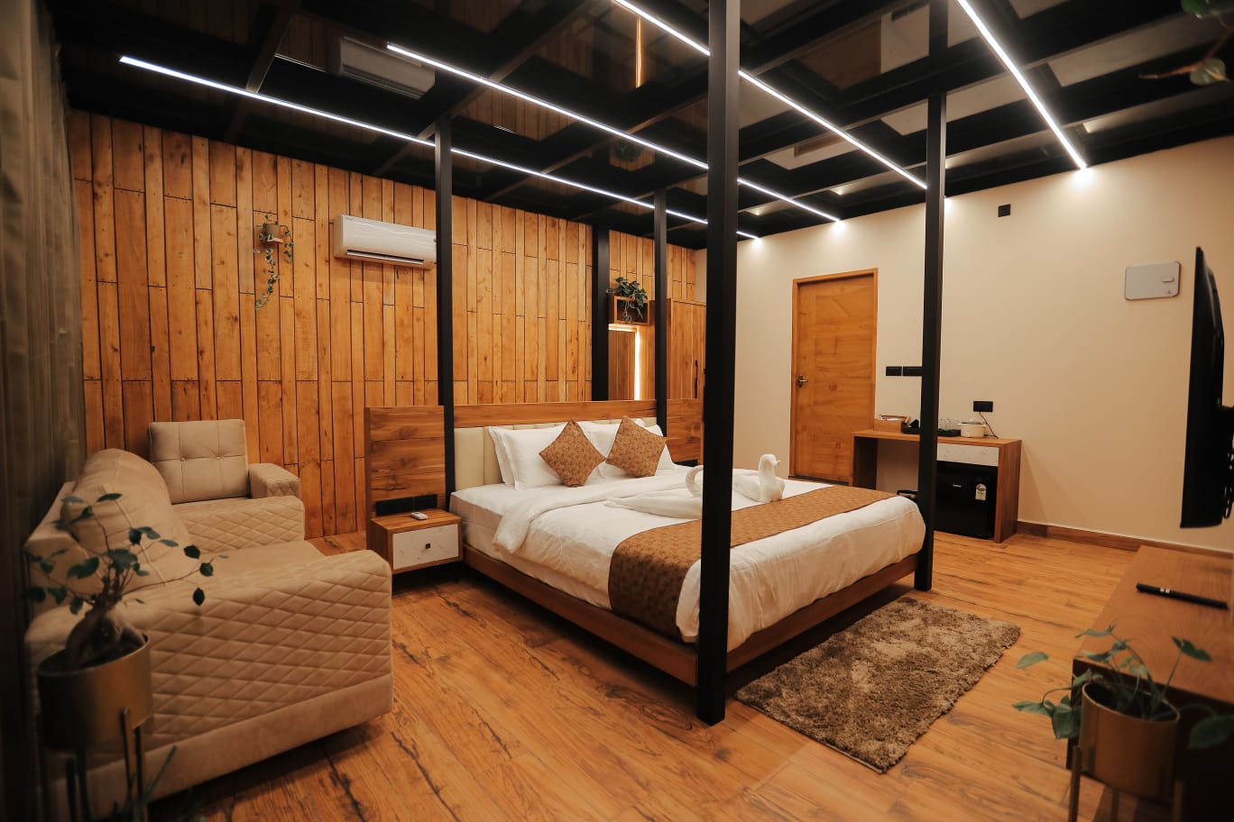 Our Aqua Lumiere Pool Villa are designed to offer a unique and memorable stay experience. Perfect for friends or families wanting a unique and modern stay experience. The two side-by-side rooms are given to the same booking only, ensuring privacy and exclusivity for your group. Each cottage features modern amenities, artistic elements with the stunning aquarium rooftop, and thoughtful touches to ensure a relaxing and inspiring stay.